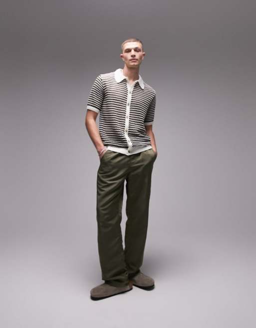 Topman knit crochet button up shirt in green