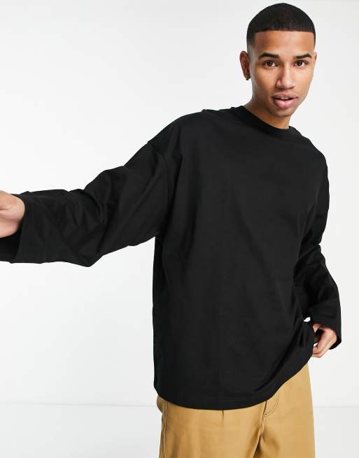 Topman long sleeve heavyweight relaxed t-shirt in black