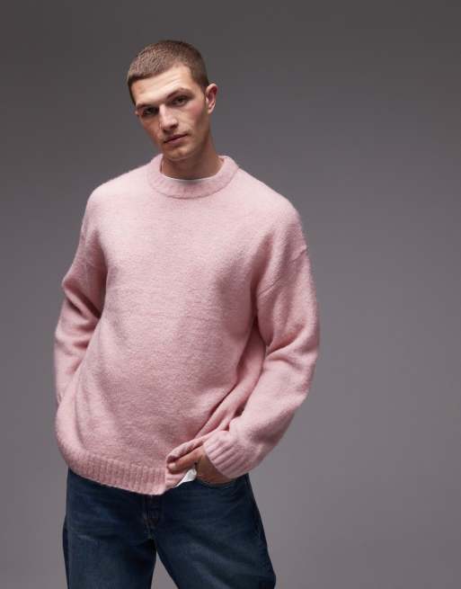 Topman loose knit crew neck sweater in pink