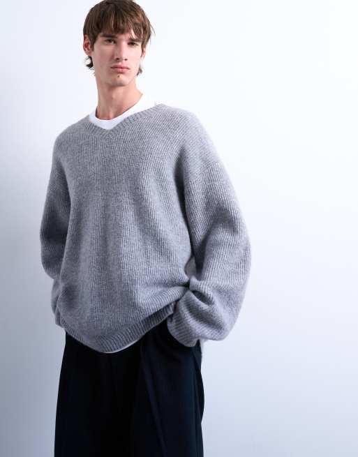 Topman oversized fit v neck sweater in gray