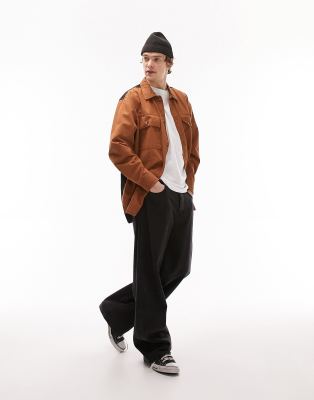 Topman oversized overshirt in brown and black