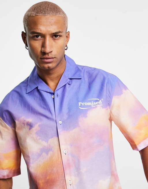 Topman oversized shirt with graphic print in cloud print
