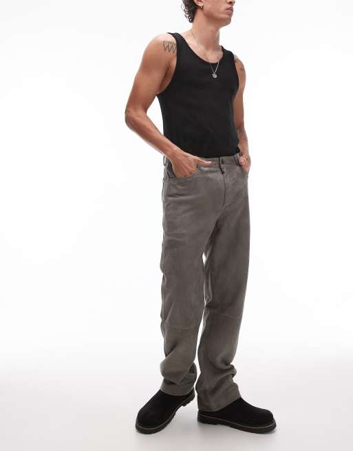 Topman premium straight suede pants in gray