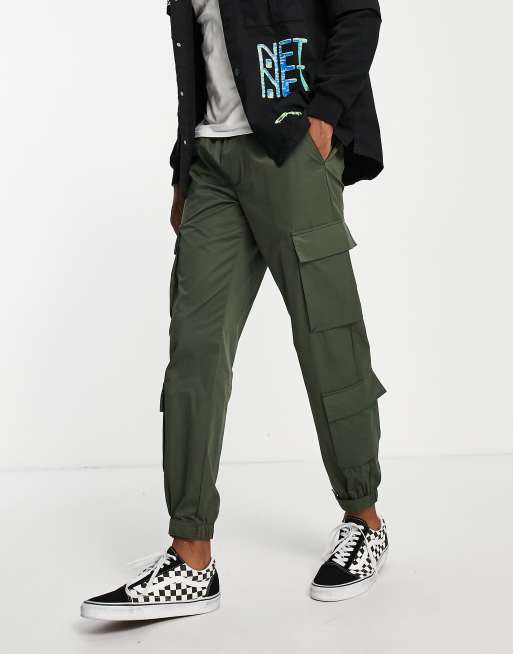 Topman relaxed cotton nylon cargo pants with velcro cuff in khaki