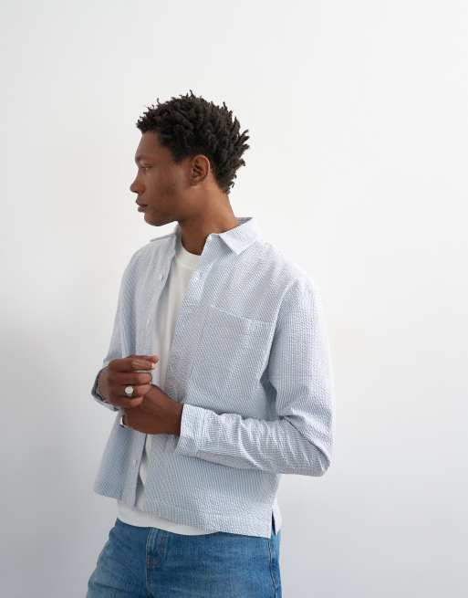 Topman relaxed fit cropped seersucker shirt in light blue