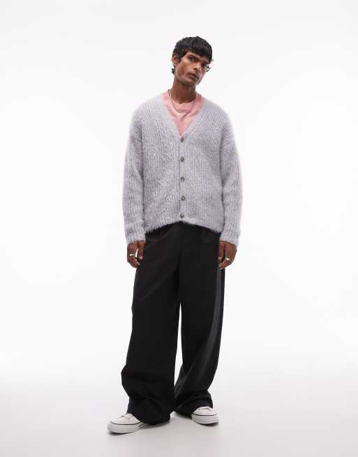Topman relaxed fit fluffy cardigan in gray heather