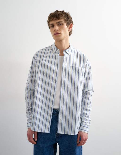Topman relaxed fit oxford shirt with stripes in blue