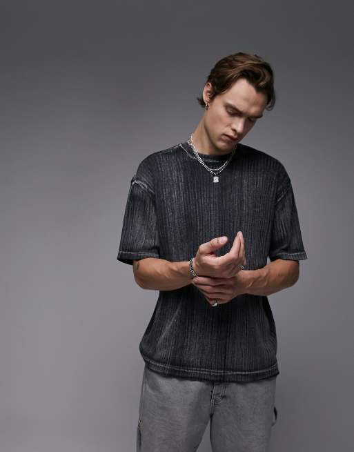 Topman relaxed fit rib knit t-shirt with bleach wash in black