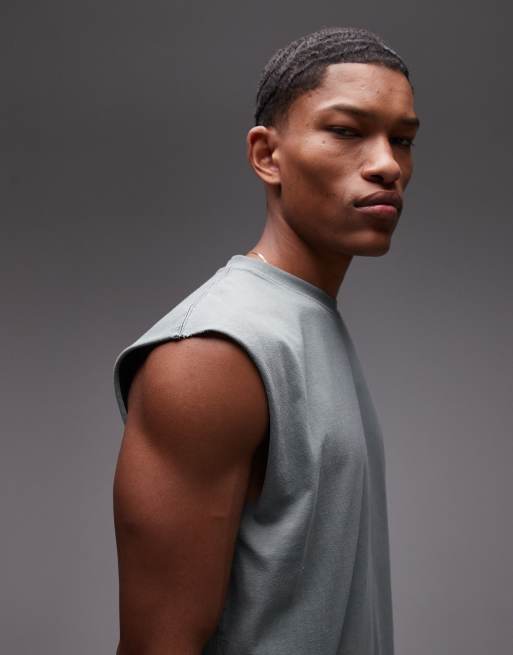 Topman relaxed fit sleeveless t-shirt in washed sage