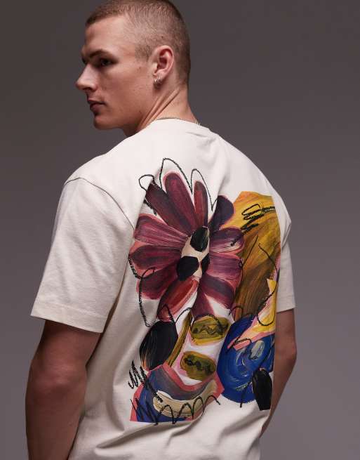 Topman relaxed fit t-shirt with front and back abstract floral prints in ecru