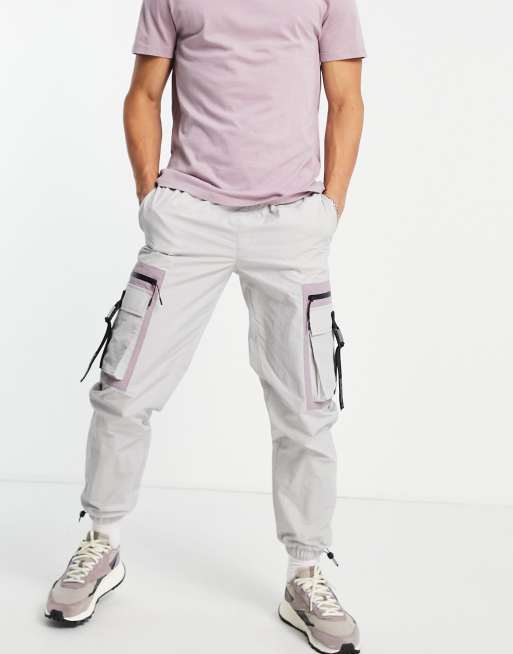 Topman relaxed patch pocket cargo pants in light gray