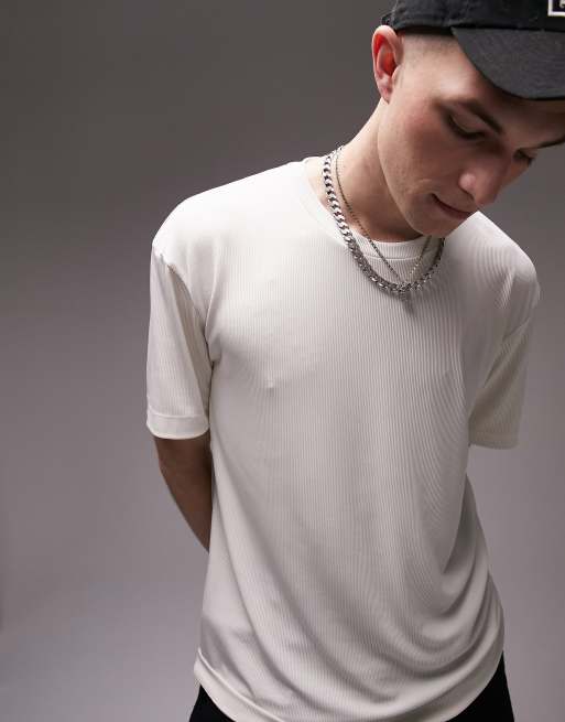 Topman relaxed rib knit t-shirt in ecru