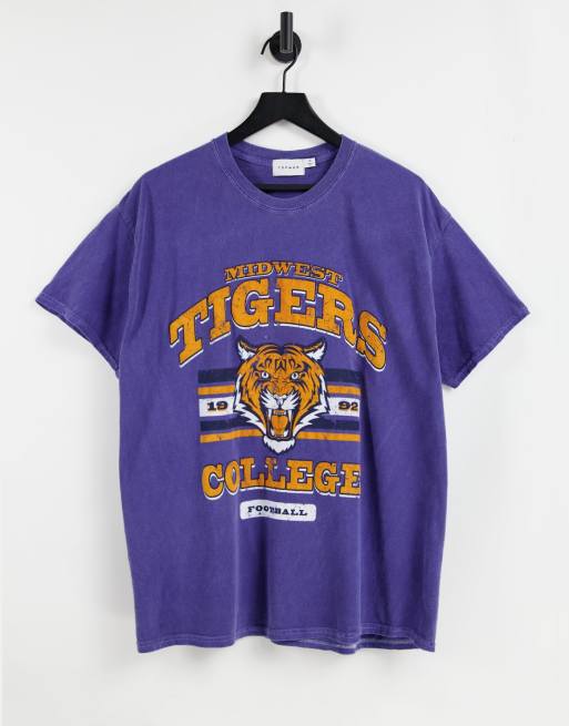 Topman relaxed t-shirt with midwest tigers college football print in navy
