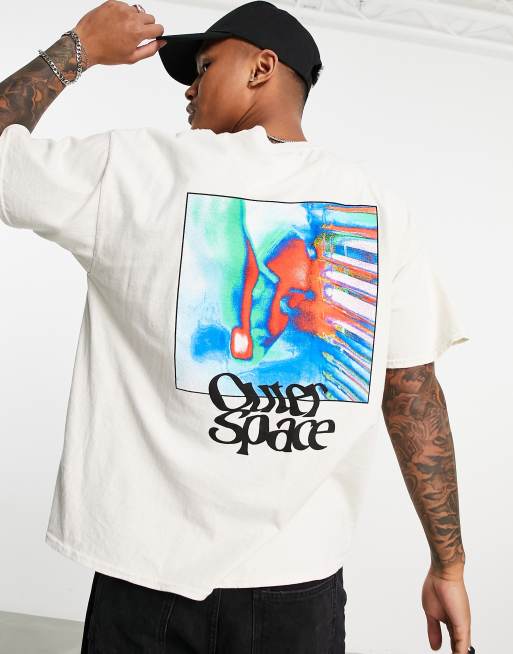 Topman relaxed t-shirt with outer space front and back prints in stone