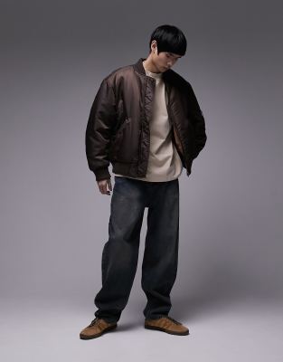 Topman reversible MA1 bomber jacket in brown