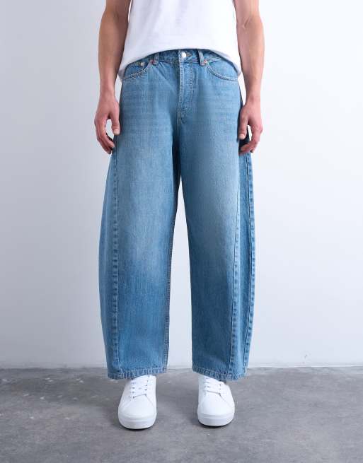 Topman rigid barrel jeans in mid wash