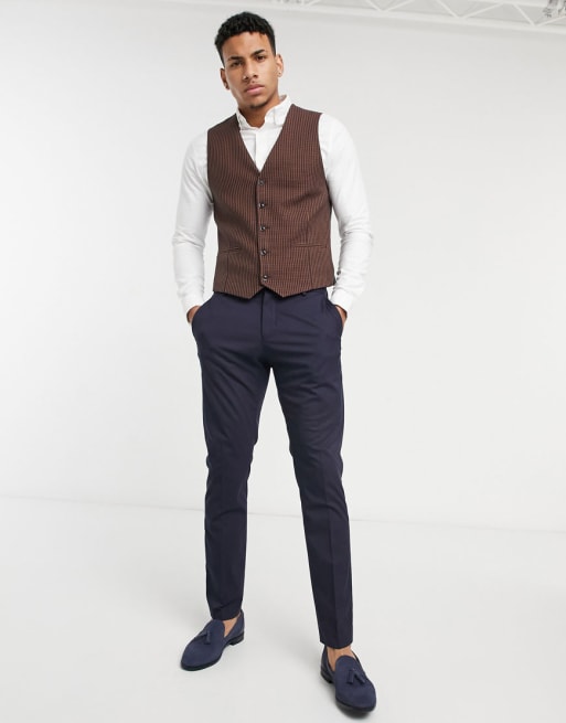 Topman rocker jacket in brown and skinny suit vest in small brown check