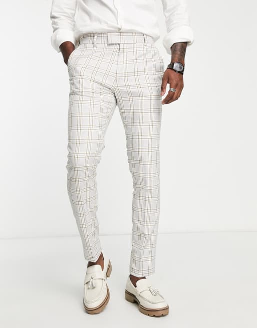 Topman skinny suit pants in gray & brown check