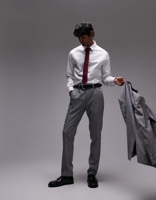 Topman skinny textured suit pants in gray