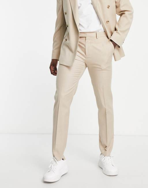 Topman slim suit pants in stone