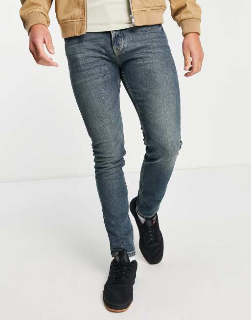 Topman stretch skinny jeans in green cast mid wash