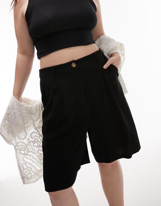 Topshop Curve linen short in black