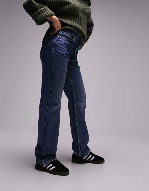 Topshop Hourglass Kort high rise straight jean in mid blue