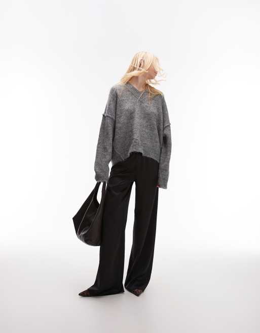 Topshop Tall satin drawcord pants in black