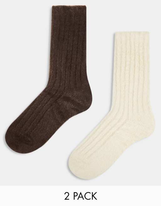Topshop 2 pack cozy fluffy yarn socks in cream and chocolate
