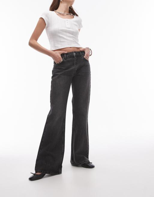 Topshop 90s flare mid rise jeans in washed black