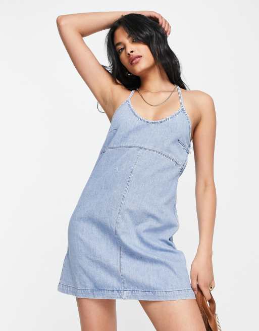 Topshop 90s strappy denim dress in bleach
