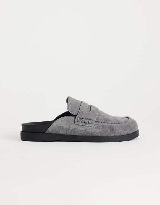 Topshop Addie real suede mule loafers in gray