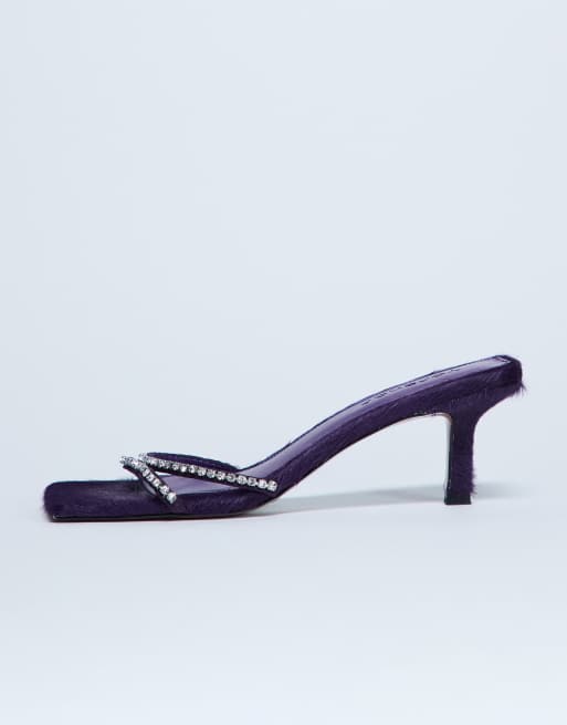 Topshop Astrid diamante heeled mules in purple real leather pony