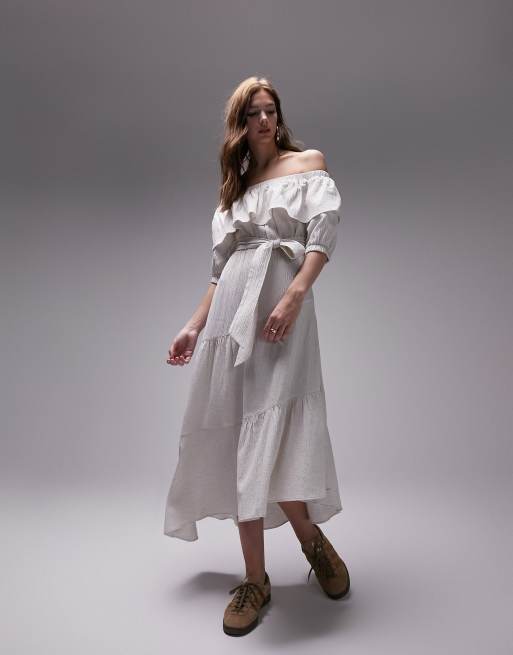 Topshop bardot midi dress in ivory