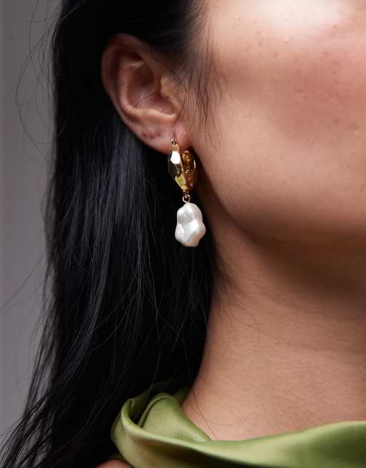 Topshop Billie molten hoop earrings with faux pearls in gold tone