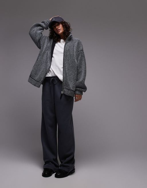 Topshop borg funnel neck zip thru fleece in salt and pepper