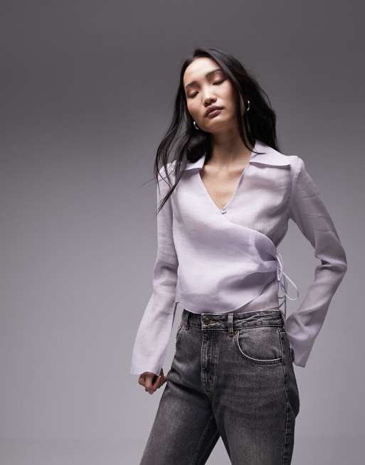 Topshop button front wrap top in lilac