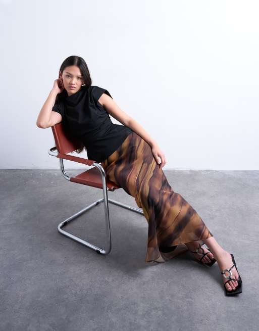 Topshop chiffon midi skirt in woodgrain