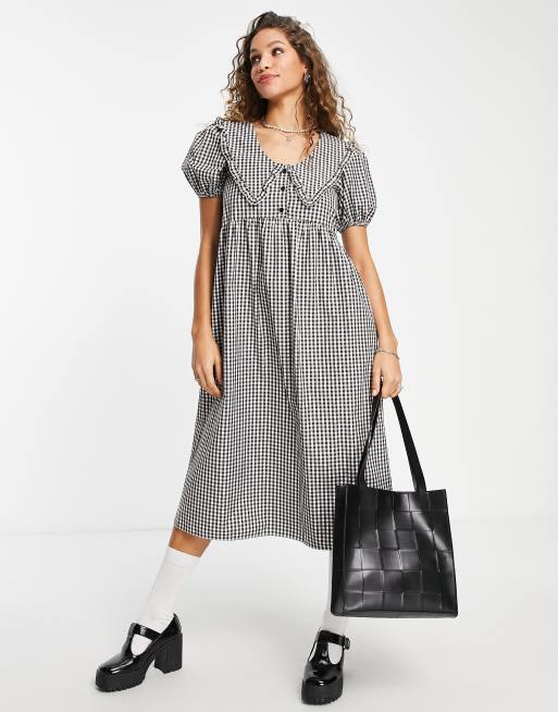 Topshop collar gingham midi dress in mono