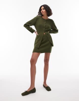 Topshop compact knit mini skirt in olive - part of a set