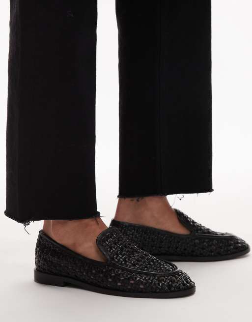 Topshop Connor real leather woven loafers in black
