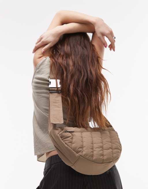 Topshop Cora nylon quilt cross body bag with front pocket in mink