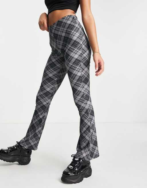 Topshop crinkle flared pants in monochrome check print