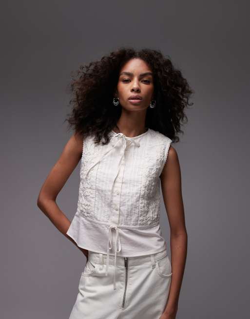 Topshop cross hatch sleeveless top in ivory