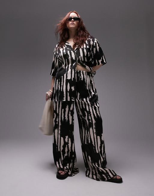 Topshop Curve satin cord waist wide leg printed pants in multi - part of a set