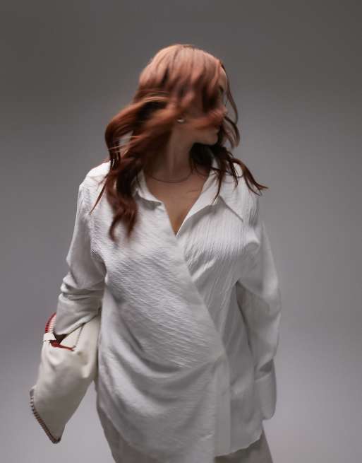 Topshop Curve textured wrap top in ivory