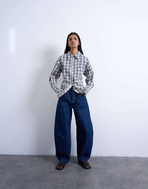 Topshop deep cuff shirt in plaid print