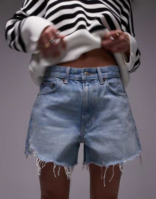 Topshop denim a line ripped mom shorts in bleach