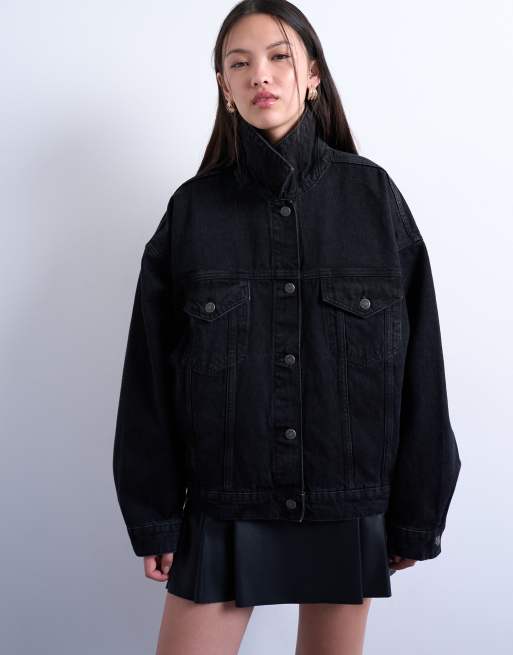 Topshop denim balloon sleeve oversized jacket in washed black