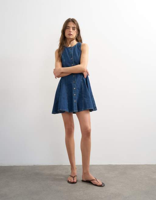 Topshop denim godet seamed mini dress in rich blue